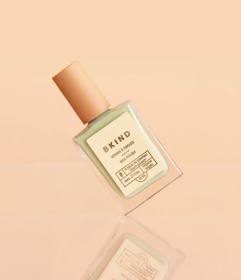 Our regular nail polish, BKIND, is cruelty-free, plant-based, and 21-FREE from 21 common controversial chemicals typically found in nail polish.
